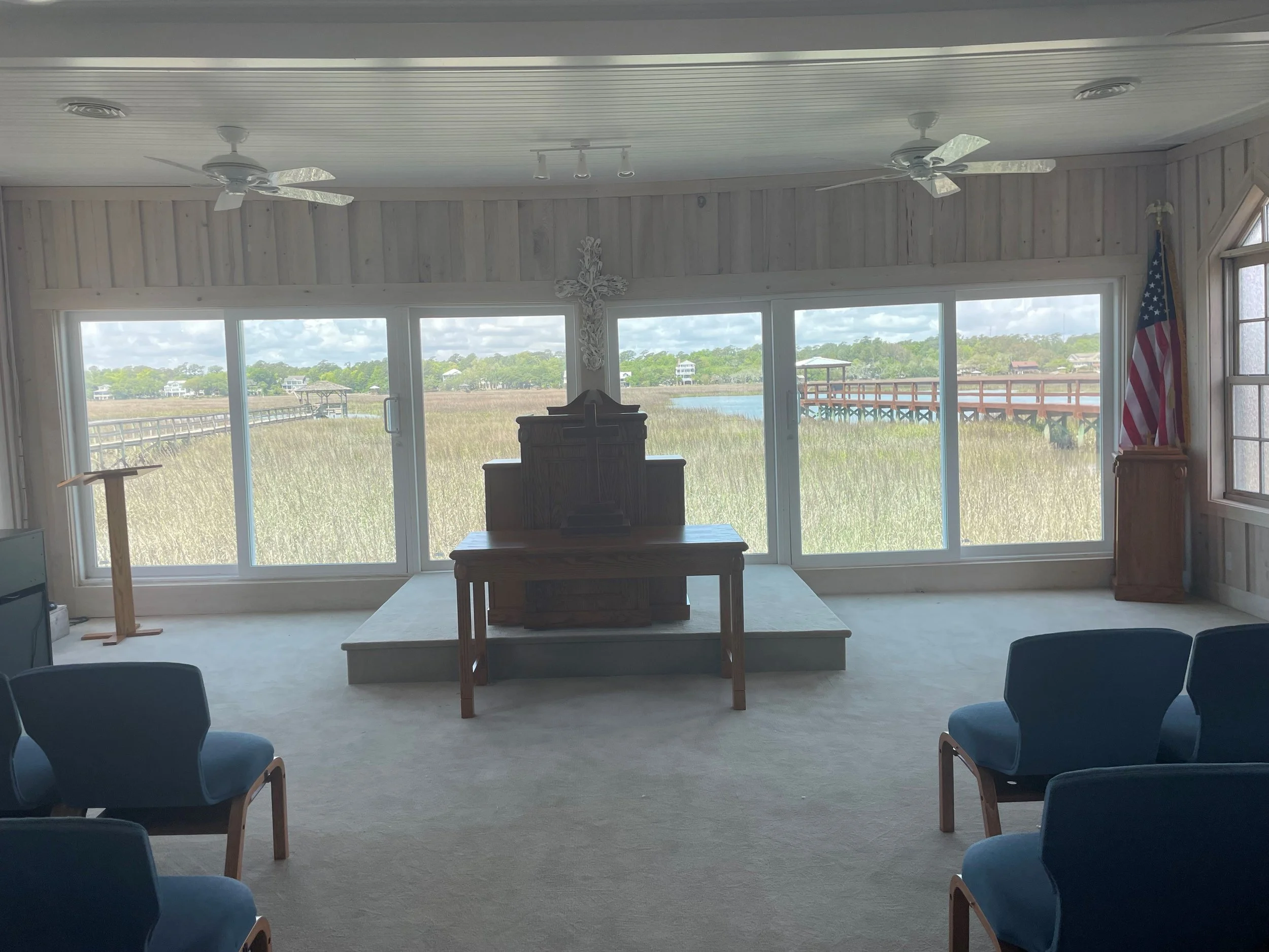 Our beautiful quaint chapel sits on the marsh side of Pawleys Island. During the summer months, visiting ministers hold non-denominational services each Sunday from the first Sunday in June to the last Sunday in August at 10:00 am (2025 calendar is located under the Sunday Services Tab).